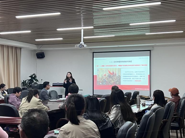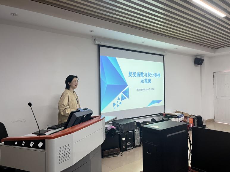 本次示范课由郭芸、许永明两位教师进行讲授,郭芸老师的示范教学内容为“新民主主义革命的形成依据”,她从中国革命的历史进程、五四运动与新民主主义革命的关系、新旧民主主义革命的区别与联系等三个方面展开了生动活泼和积极互动的讲解。许永明老师的示范教学内容为“解析函数”,她向大家娓娓道来复变函数、解析函数,带领大家一起参与到公式的推导过程中。随后,李锐教授和殷毅副教授分别对两位教师的示范课进行点评,殷教授首先肯定了郭芸老师的课堂,提到在课堂中可以适当的穿插视频进行辅助讲解,希望授课教师更加熟悉教材内容,努力提高自身教学水平。李教授对许永明老师亲切、大方的教姿教态给予了肯定,希望授课教师注意课堂环节的完整性。在场教师随后进行了相互讨论和分享。