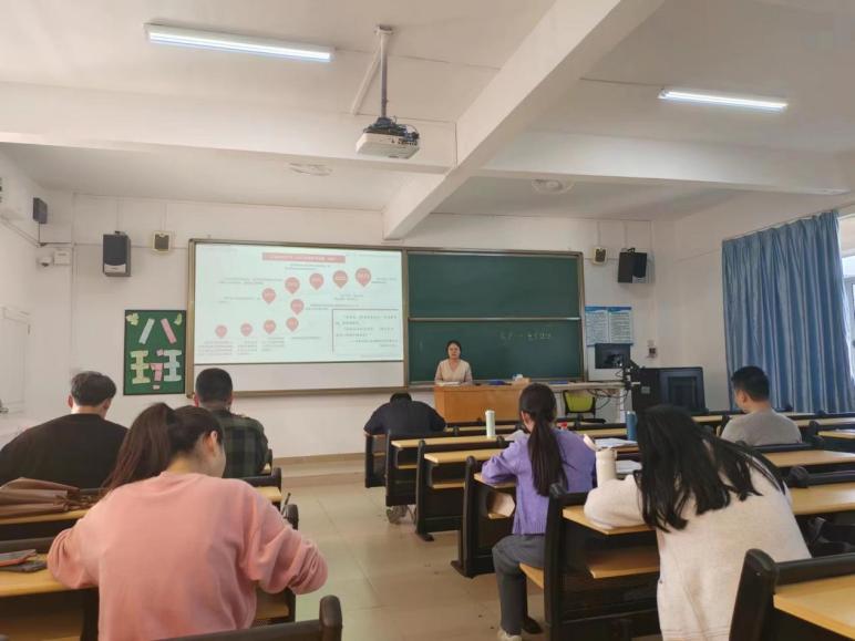 在三位老师讲解完毕之后,刘富杰老师从教学设计、教学板书、教学时间把控等方面对此次磨课活动进行了总结,她指出,新教师要加强备课工作,创新教学形式,应坚持“内容为王”,注重突出本门课程的思想性、理论性、学理性。