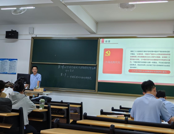 三位参与此次磨课工作的教师,按照预定顺序进行展示。张晓瑜老师根据教材第十二章——建设社会主义生态文明的内容,阐述如何坚持山水林田湖草沙一体化保护和系统治理。张朋老师根据教材第二章——以中国式现代化全面推进中华民族伟大复兴的内容,分析中国式现代化的中国特色。黎锦贤老师则根据教材第八章——发展全过程人民民主的内容,论述全过程人民民主式社会主义民主政治的本质属性。