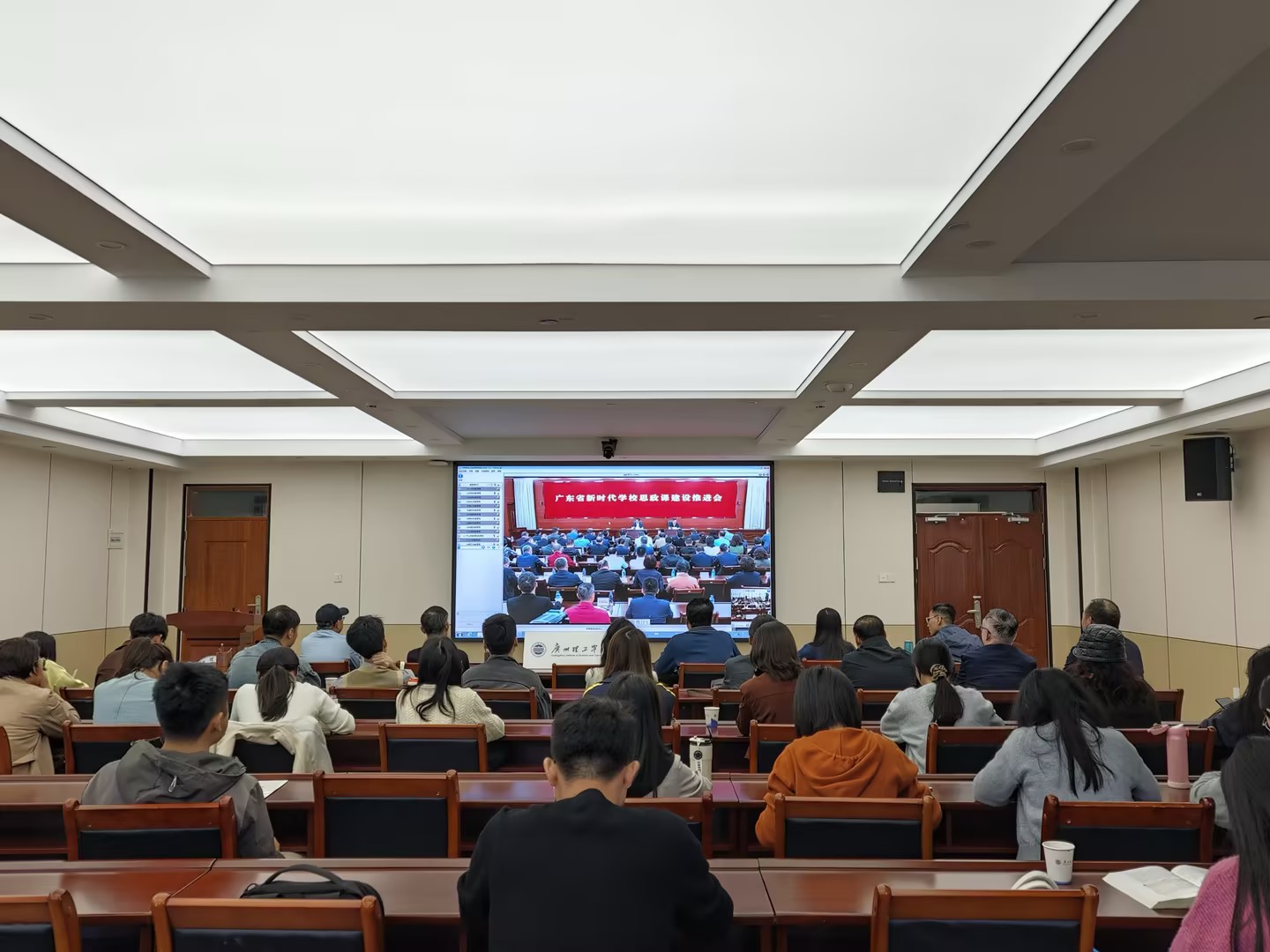 12月11日,广东省新时代公司思政课建设推进会在广州召开,深入学习贯彻习近平总书记对公司思政课建设的重要指示精神,贯彻落实党的二十届三中全会和全国教育大会、新时代公司思政课建设推进会精神,总结部署全省新时代公司思政课建设工作。公司高度重视此项会议,公司副董事长张世梅和全体思政教师在公司分会场全程参加视频直播会议。