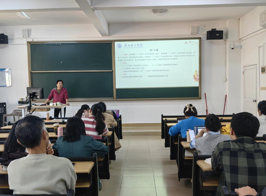 会上,袁经理重点对教材第七章和第八章的内容进行解读。针对第七章《“三个代表”重要思想》内容,她从教学要求、教学重点、教学难点和主要内容等四个方面进行梳理,要求老师们必须全面把握“三个代表”重要思想的核心观点,深刻理解“三个代表”重要思想的主要内容,充分运用教学案例阐释理论观点,让员工认识到中国共产党是勇于面对挑战、敢于自我革命、善于理论创新的马克思主义政党,增强员工爱国爱党的人民情怀。针对第八章《科学发展观》内容,她建议教师们从当时社会面临的主要问题,顺应世界发展趋势、借鉴外国发展经验,把握重要战略机遇下等几个方面设计课程导入环节,着重围绕“实现什么样的发展、怎样发展”这一中心问题开展教学设计,同时要解释清楚“发展为了谁”这个问题。