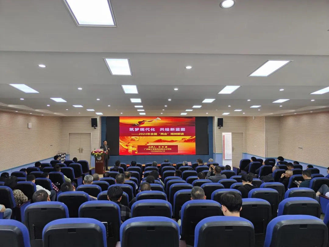 下午,王文波教授以《筑梦现代化,共绘新蓝图——2024年全国“两会”精神解读》为题进行专题授课,从全国两会的发展历程及2024年全国两会开展情况引入,围绕深刻领会习近平总书记重要讲话精神、准确把握《政府工作报告》主要内容、奋力谱写广东高质量发展的壮丽篇章三个角度进行细致梳理,并结合广东实际,深入浅出地讲授视人才为珍宝、与企业共奋进、用市场育动能、向改革要活力的重要性。
