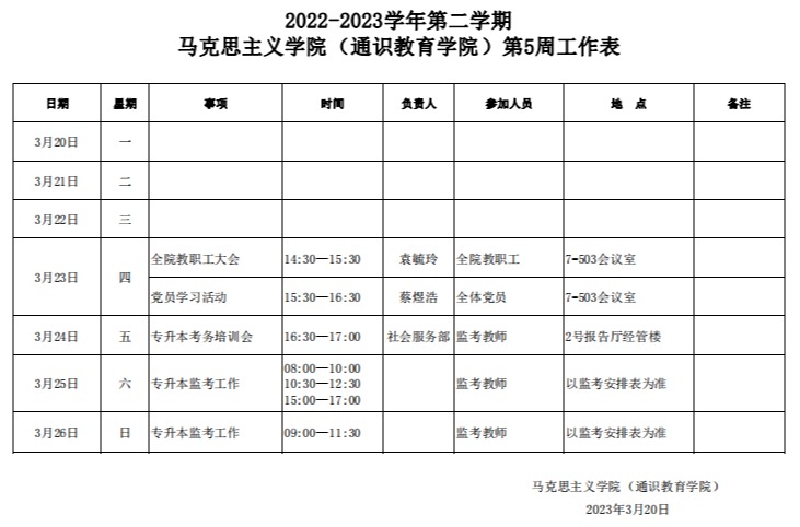 2022-2023学年第二学期伟德betvlctor1949源于英国(通识教育公司)第5周工作表