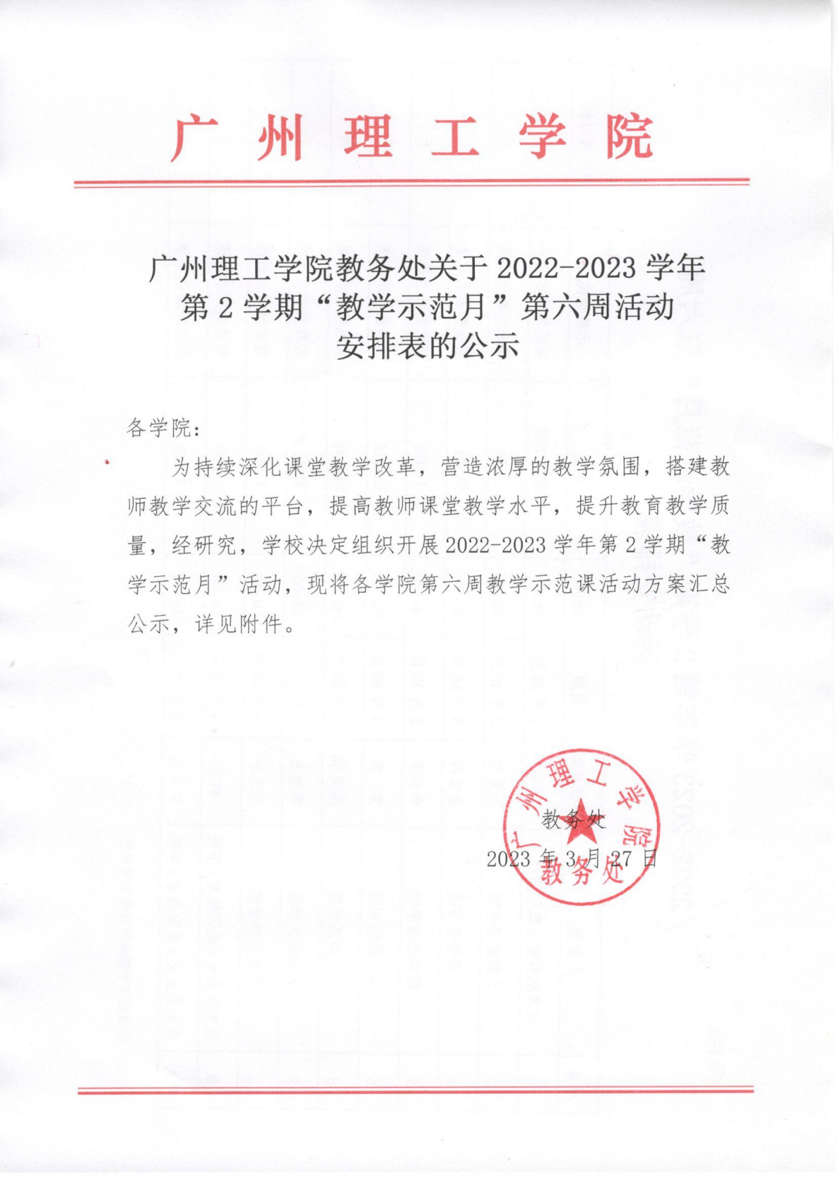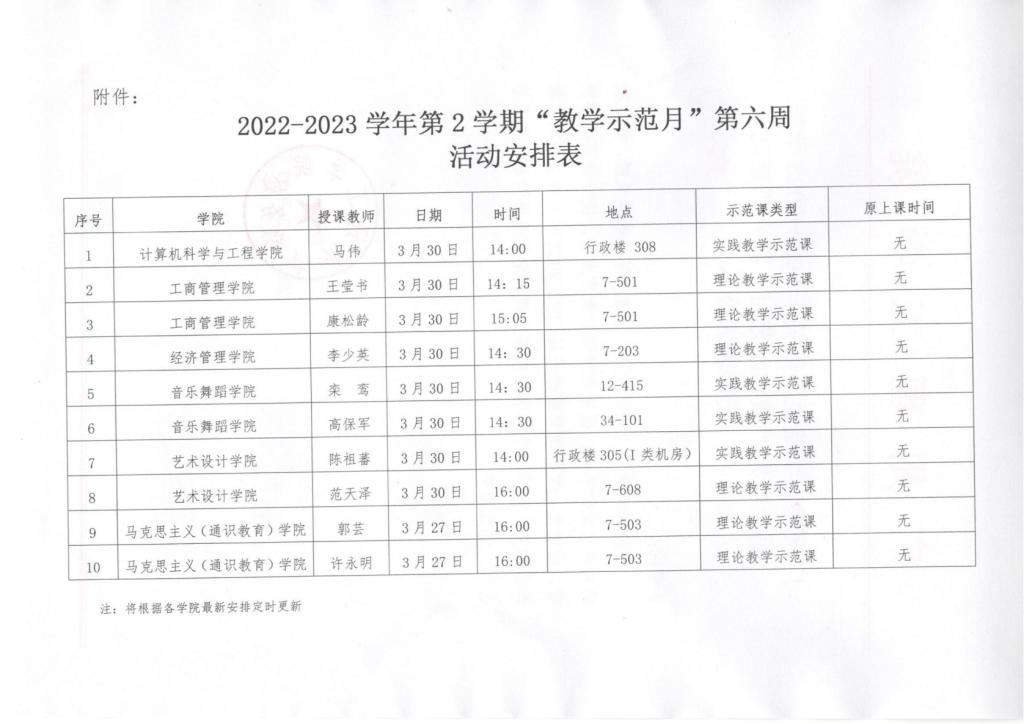 2022-2023学年第2学期“教学示范月”第六周活动安排表公示