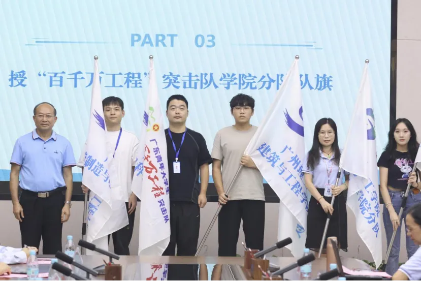 会上,黄圣诚书记与肖海副董事长分别向“百千万工程”突击队公司分队、“资助和助学贷款政策下乡行”实践队授旗。校团委就2024年公司暑期社会实践活动的整体情况和部署安排进行介绍,明确社会实践的目标、任务与要求。随后,志愿者代表庄严宣誓表示,将在实践中践行志愿精神,尽己所能,不计报酬,帮助他人,服务社会,践行志愿精神,为“百千万工程”贡献力量。