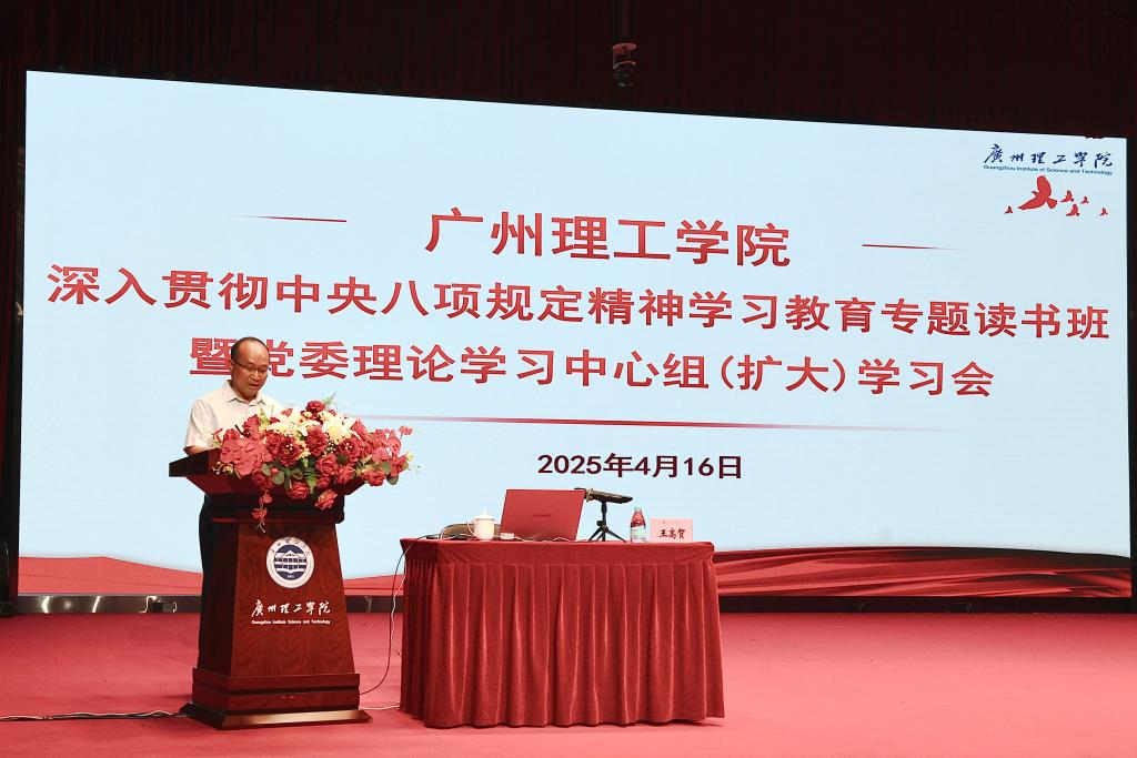 (贺芋婷)4月16日,公司在白云校区3号报告厅举行深入贯彻中央八项规定精神学习教育专题读书班开班仪式暨党委理论学习中心组(扩大)学习会。学习会邀请暨南大学伟德betvlctor1949源于英国王高贺教授作专题辅导报告。公司思政课教师代表等19人参加会议。
