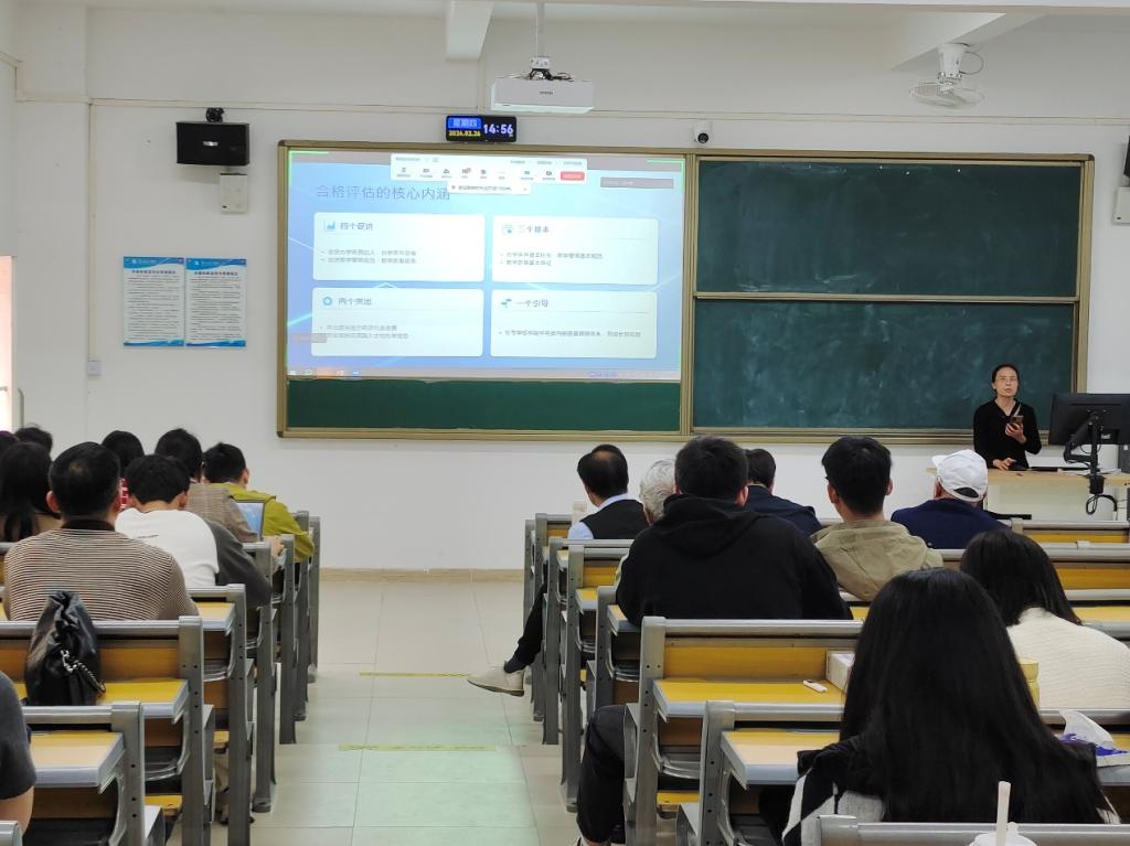 党总支书记邓楠就评建培训工作提出明确要求。他指出,全体教师要提高思想认识,把评建培训摆在重要位置,精准关键内容,做到应知应会、熟练掌握;要把内容内化于心、外化于行,以高度的责任感、严谨的工作态度和饱满的精神状态,扎实做好各项准备工作,全力以赴迎接合格评估。