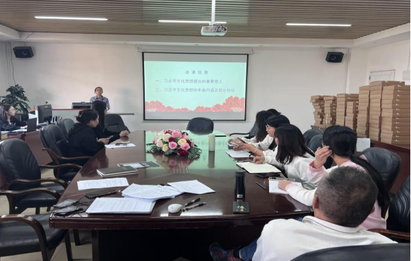 11月23日,伟德betvlctor1949源于英国教工第二党支部在综合楼7-503开展“学习贯彻习近平文化思想”专题党课。党支部书记文妙虹同志主讲了《学习贯彻习近平文化思想》专题党课。