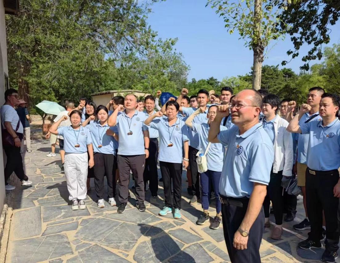 黄圣诚书记和袁毓玲经理跟随讲解员的引领,多次在中央军委作战室旧址、新华通讯社旧址以及毛泽东、朱德、周恩来、刘少奇等老一辈革命先辈的旧居处驻足参观,这些详实的文物、图片,系统地再现了中共中央和领袖们在西柏坡期间的革命实践活动。在西柏坡,黄圣诚书记带领党员同志重温入党誓词,大家紧握右手,面向党旗,庄严宣誓,进一步坚定了理想信念,增强了党性修养。宣誓完毕后,党员同志们心潮澎湃,纷纷表示,作为共产党人,我们要牢记毛泽东同志向全党发出的“两个务必”的号召,要对党忠诚,不忘初心、牢记使命,为共产主义事业奋斗终身!在新时代,我们要紧紧团结在以习近平同志为核心的党中央周围,用习近平新时代中国特色社会主义思想凝神聚气,踔厉奋发、砥砺前行,从胜利走向新的胜利,答好新时代“赶考”之卷。