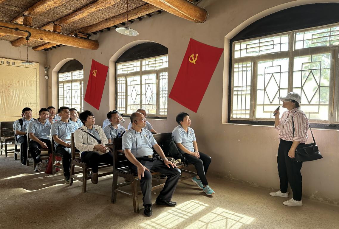 李家庄作为接送民主人士的接待站,在周恩来亲自指挥以及中央统战部和有关地方党组织周密策划、精心安排之下,圆满完成了接送国内民主人士赴解放区的任务。其中,在黎智(又名闻立志)同志领导下的天津地下党护送民主人士到解放区的事迹令大家印象深刻。为掩护民主人士奔赴解放区,地下党组织的同志们还专门编了一首七言打油诗作为联络暗语,此外,在护送人员去解放区时,也要事先做好化装等准备工作,即使是在到达目的地之后也不能放松警惕,要按照百家姓和天干地支组成的特殊暗语来进行对接。党员同志们紧随黄圣诚书记和袁毓玲经理的脚步,认真聆听讲解员的介绍,大家纷纷感叹,中共中央和各民主党派人士为和平建国做出了巨大努力,在中共中央和各民主党派人士通力合作之下,人民民主统一战线更加巩固、团结、壮大。在参观过中央统战部旧址之后,大家对于统一战线的认识也更为深刻。在中国共产党的带领之下,在统一战线的指引之下,我们过去靠团结奋斗创造了辉煌历史,以后也要团结奋斗开创美好未来,要为建设社会主义现代化强国,实现中华民族的伟大复兴发挥先锋模范作用。