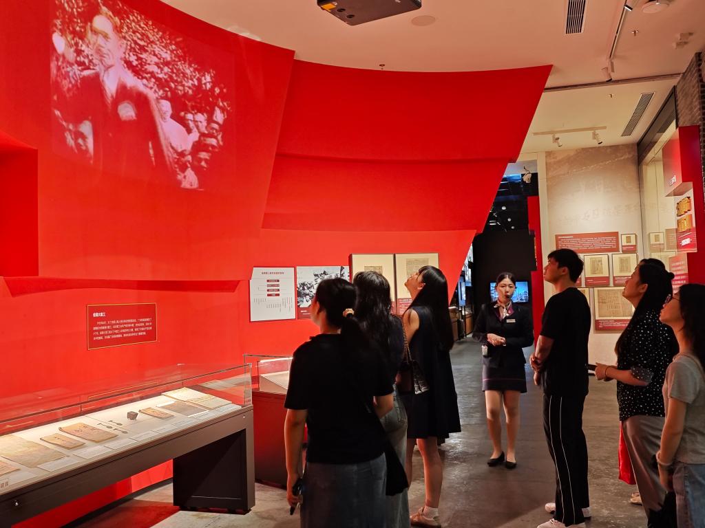 在讲解员绘声绘色的讲解下,党员同志们先后参观了“互鉴千年、融通未来——海上丝绸之路专题版本”“时代留声、传世之音——中国黑胶唱片版本展”“千秋写印、华夏有章——中华版本发展概览”“红色印记、映照初心——红色广东专题版本”等核心展区。从古老的甲骨文到精湛的雕版印刷术再到现代的数字版本,从留声机、收音机、黑胶唱片、电视机到人工智能、全息影像等现代科技,悠久繁荣的中华版本见证了历史前进的步伐;从省港大罢工到广州起义,沿着新民主主义革命的历史脉络,通过珍贵的文献、实物和影像资料,再现中国共产党在广东团结带领人民进行革命斗争的光荣历史,深刻感受到红色文化的强大生命力与感召力。