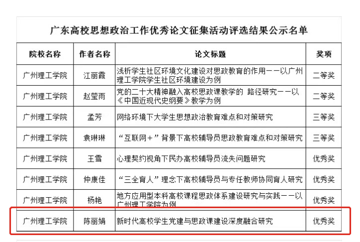 公司陈丽娟老师在广东高校思想政治工作优秀论文征集活动评选中荣获佳绩