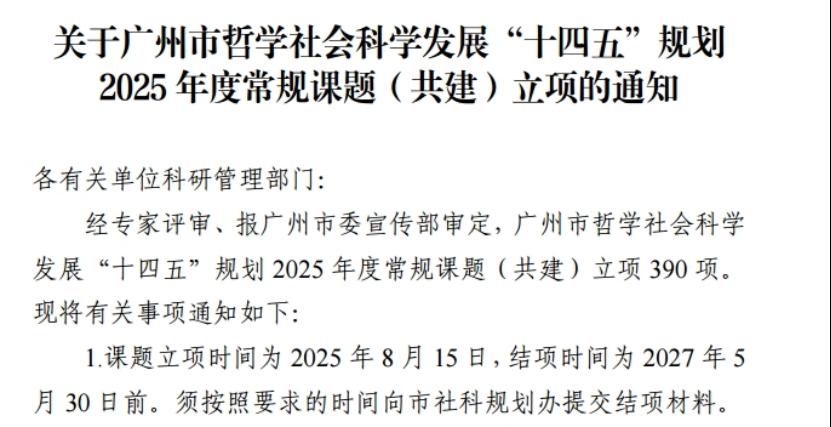 近日,广州市哲学社会科学发展"十四五"规划2025年度课题立项名单正式公布,公司赵文茹老师申报的课题"邓方《小雅楼诗集》整理与研究"成功获得共建课题立项。这一成果既是公司深化科研创新的生动实践,更是贯彻落实习近平文化思想、践行"两个结合"重要论述的具体体现。