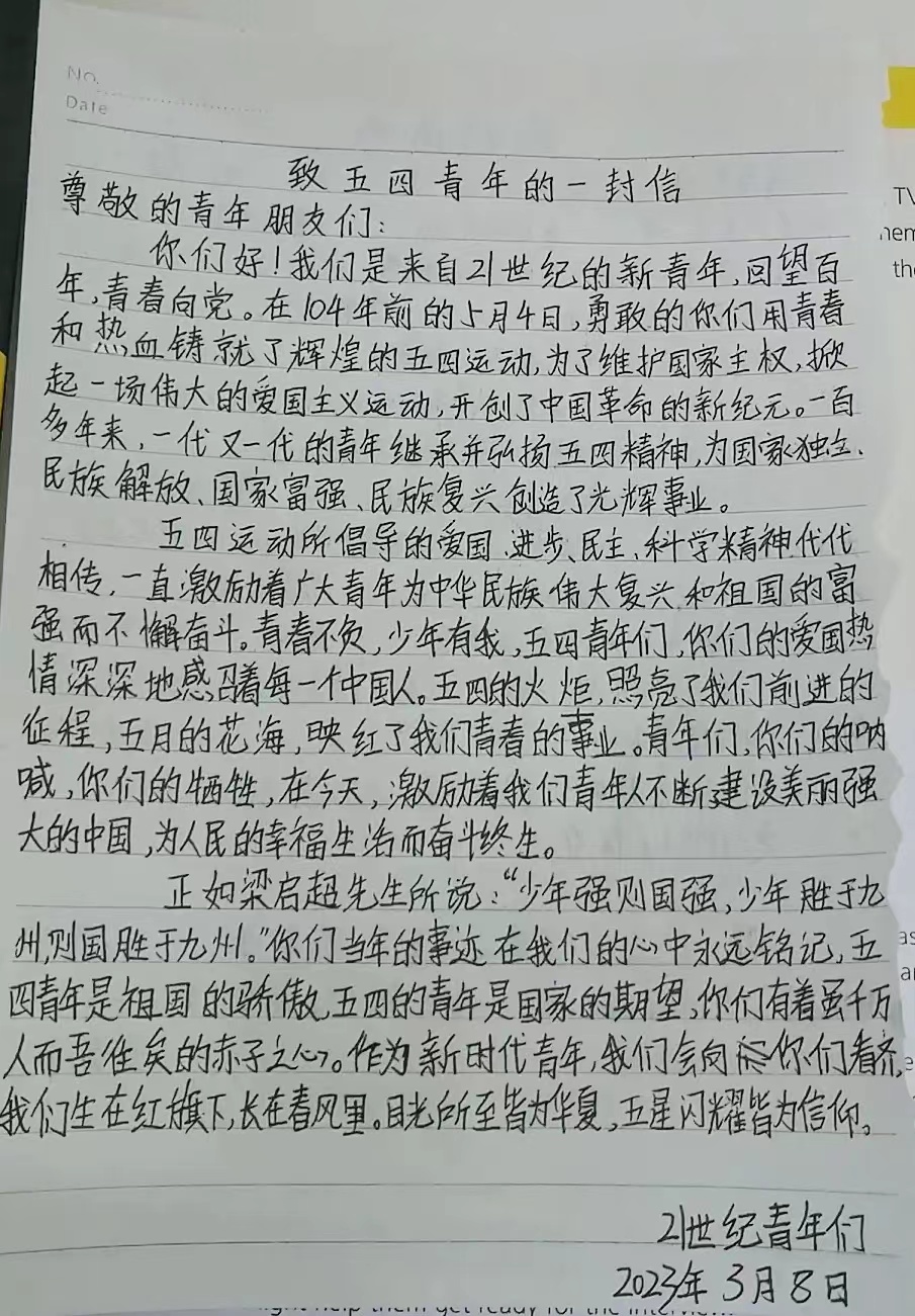 阮昊、姜景祺(来自2022级物联网1班)的手写信