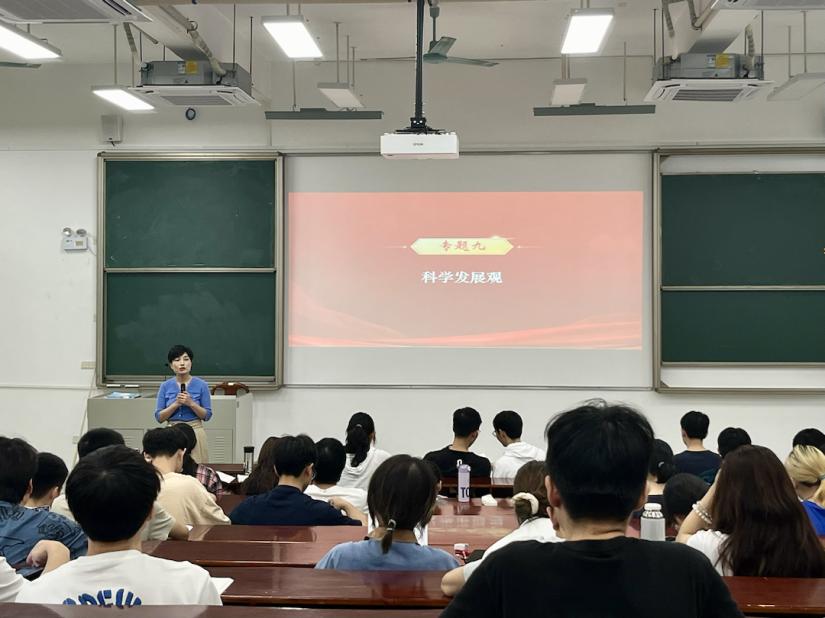 王微老师正在讲授科学发展观(张晓瑜 摄)